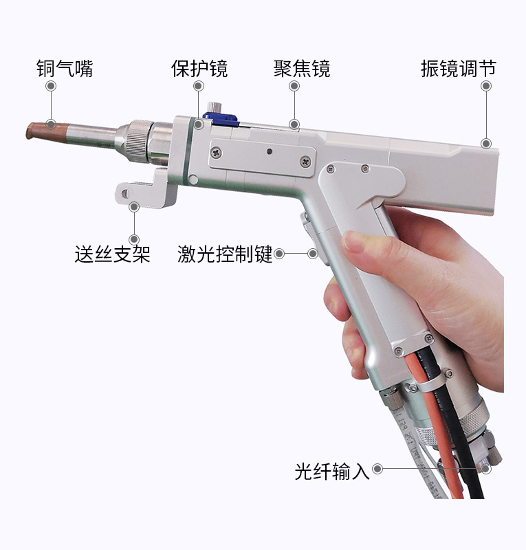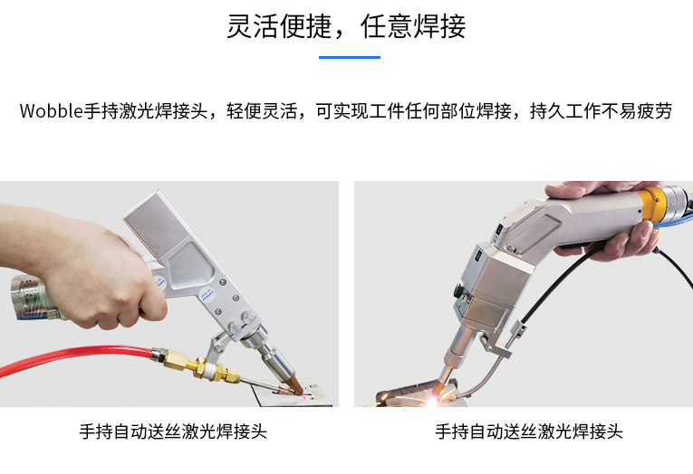 通發(fā)激光一體式手持式激光焊接機,用手持式焊接槍替代以前固定光路,手拿焊接,靈活方便,焊接距離更長,克服工作臺空間的局限性,工件尺寸不統(tǒng)一時無法自動焊接的情況下使用。主要針對大型工件、固定位置如內(nèi)直角、外直角、平面焊縫焊接、焊接時熱影響區(qū)域小,變形小、而且焊接深度大,焊接牢固。是遠距離焊接大工件的較為靈活的全新的焊接工藝。